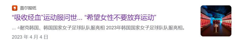 为了获取女性消费者的注意力,一些运动服饰品牌会在功能性上大做文章,甚至到了“匪夷所思”的地步,韩国媒体就曾报道,耐克推出了一款可以吸收经血的运动服,采用层压角撑板吸收经血、防止渗漏并支持再润湿功能,“让你即使在经期也能自由舒适地进行运动。”