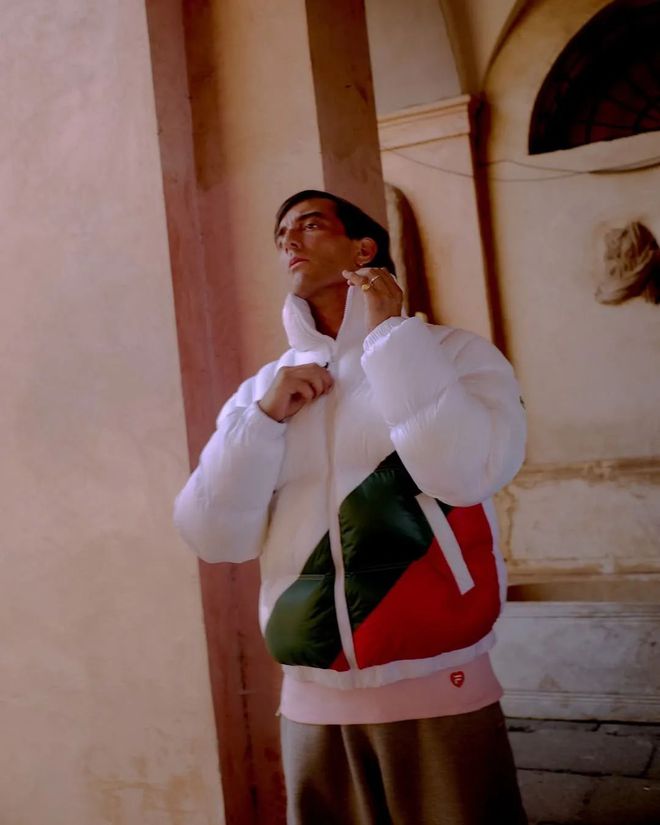 打破传统商务与运动着装的界限,是该系列颇为明显的特点之一。像领带、衬衫、绗缝夹克等单品也许在运动服饰中并不常见,却是当下年轻人在打造 Sporty Chic 风格时常用到的,意想不到的元素之一。基于 FILA 的基因之上,Lev Tanju 接受 NOWRE 的采访说道:「首个系列灵感源自我喜欢的意大利事物,无论是建筑的色彩,还是 Paninari (指上世纪 80 年代意大利北部,年轻人热衷奢侈消费,总是将不同风格混合在一起的生活方式) 所采用的一些风格元素…这是我对 FILA+ 的构想。」