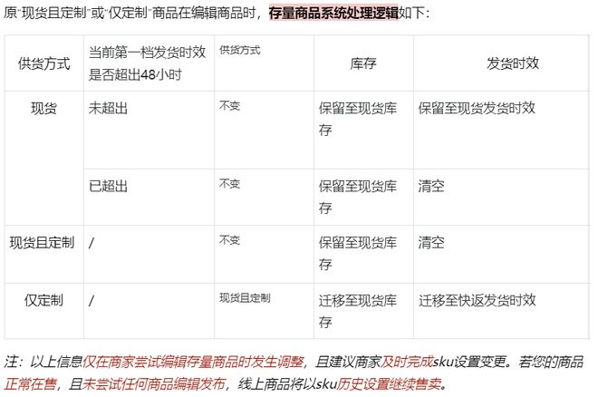 由过去按照买家采购数量判定发货时效,更改为按照买家下单的商品规格的库存属于哪类库存来判定发货时效且支持商家针对商品规格分别设置不同发货库存及对应的发货时效。(点此查看具体规则公告)