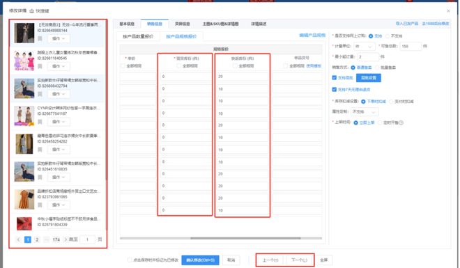 ④可以在左侧快速切换商品,或者点击底部快捷键,进行下一个产品修改,方便快捷!