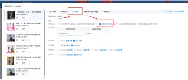 Bsports必一体育1688商家如何快速修改【女装】类目商品的“快返发货时效及库存”