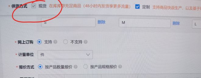 本次供货方式选择现货为默认必选项为规避部分故障风险,商家无实际48小时可发货的现货,现货库存不写或者写0即可;在快返库存中填写实际可快返生产售卖的库存量,并设置好对应快返发货时效即可。