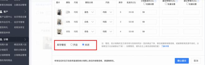 去确认分销是否开通的库存管控,如果开通请关闭,即可设置快返库存;若开启则仅可设置现货库存;