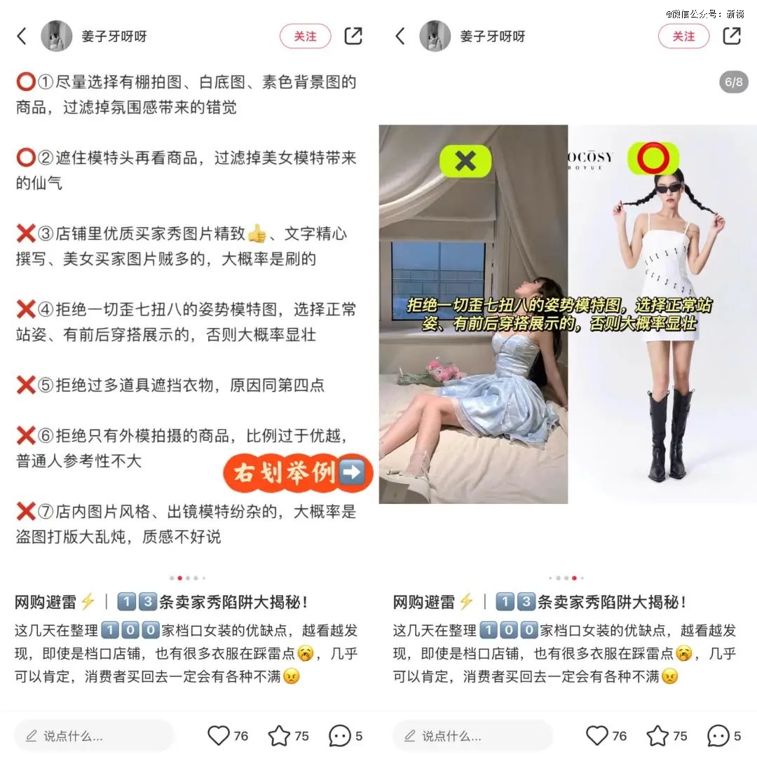 “每天得罪一个网红女装店”,甚至一度成为测评博主的热门选题,消费者反而能够在测评中看到衣服的真实细节和展示效果。
