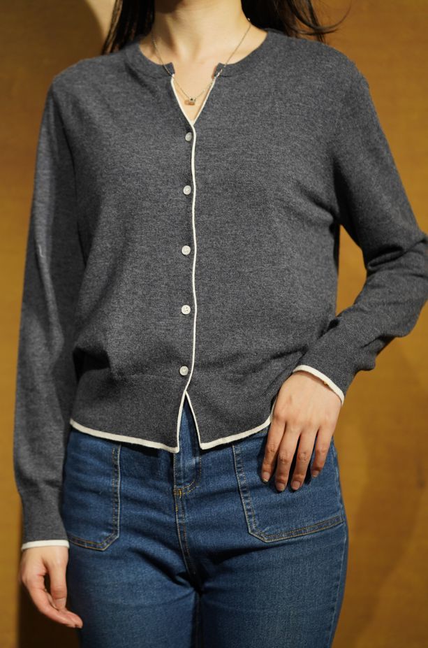 这款优雅撞色针织开衫,以其简约而富有层次的设计,展现出心机时髦的优越感。撞色元素为单品增添了丰富的层次,门襟与袖口的呼应设计,使其成为日常通勤的理想选择,提升穿着的精致度。