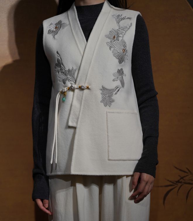 新中式融合现代元素改良传统马褂,承袭闺秀优雅,重释清韵之美,演绎东方女性的知性美。