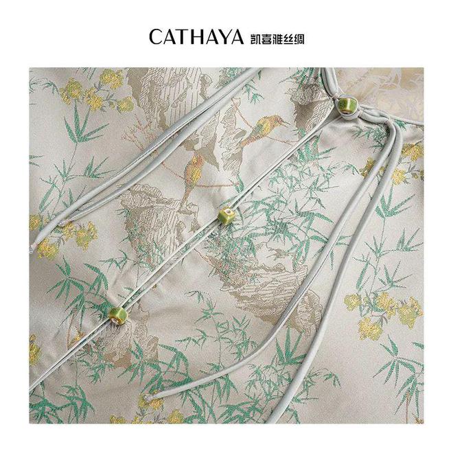 底胚是100%的桑蚕丝,中 国元素+园林的设计感,非常唯美。圆领加上流苏一字扣,实在貌美好看。