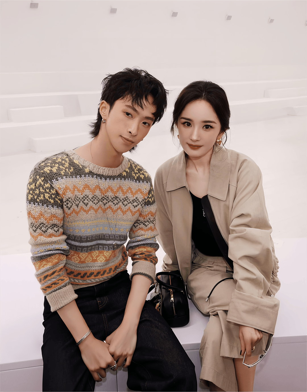 除了全球代言人杨幂, LOEWE 还邀请了庾恩利看秀,这位帅气男孩在秀场内,还和杨幂同框合影啦。▼