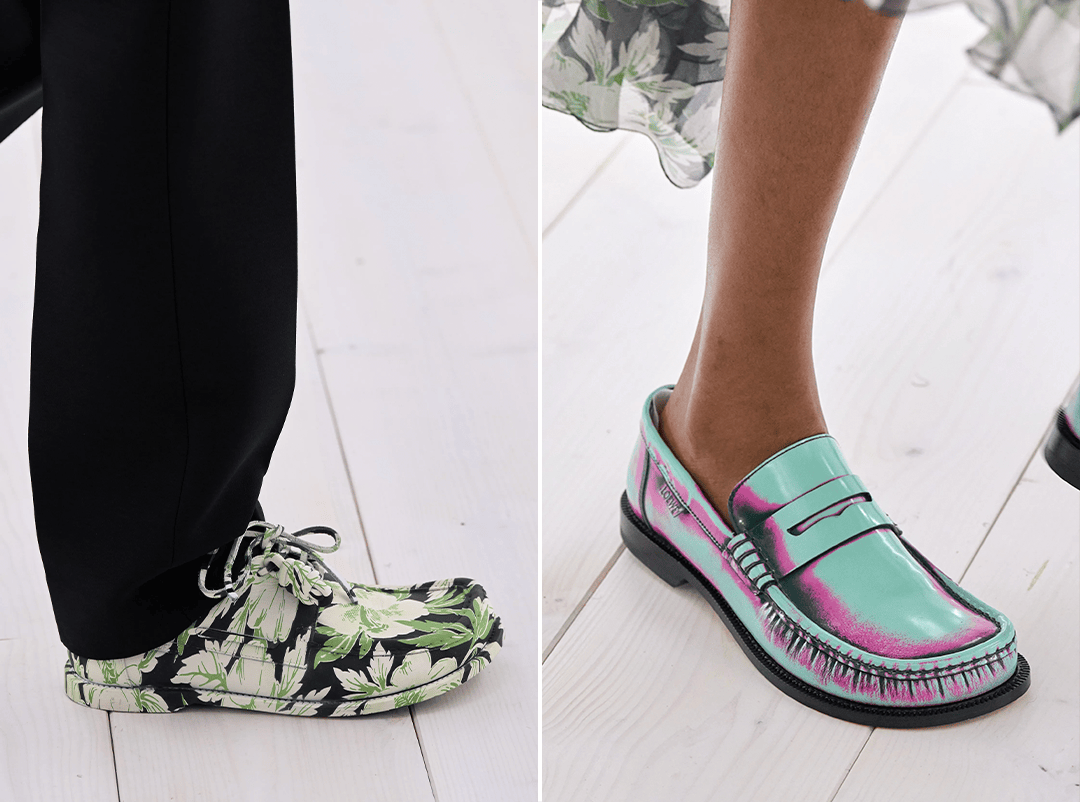 这一季不少亮点。大部分 LOOK 都用休闲运动鞋或乐福鞋来搭配,模特们行走自在松弛。