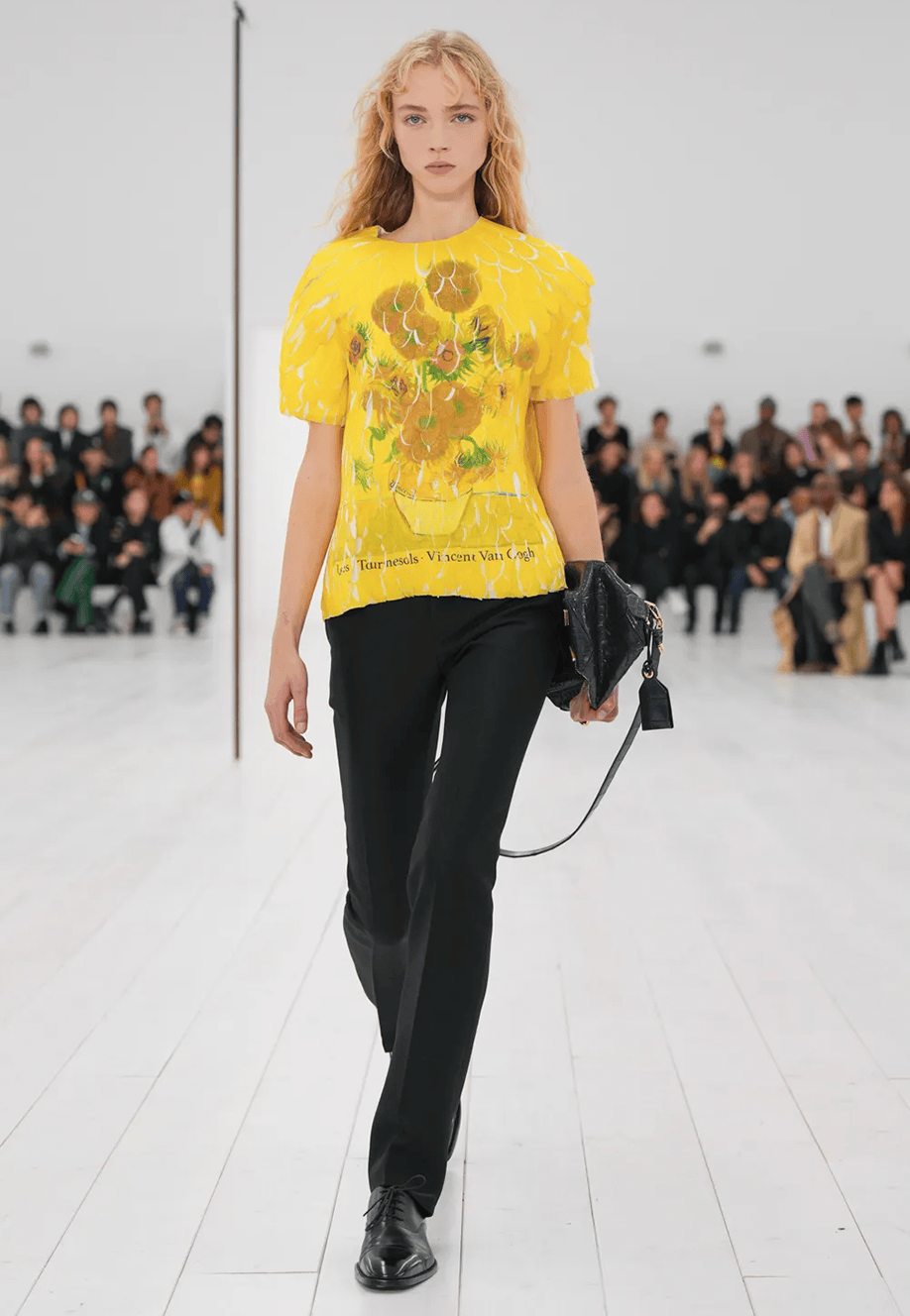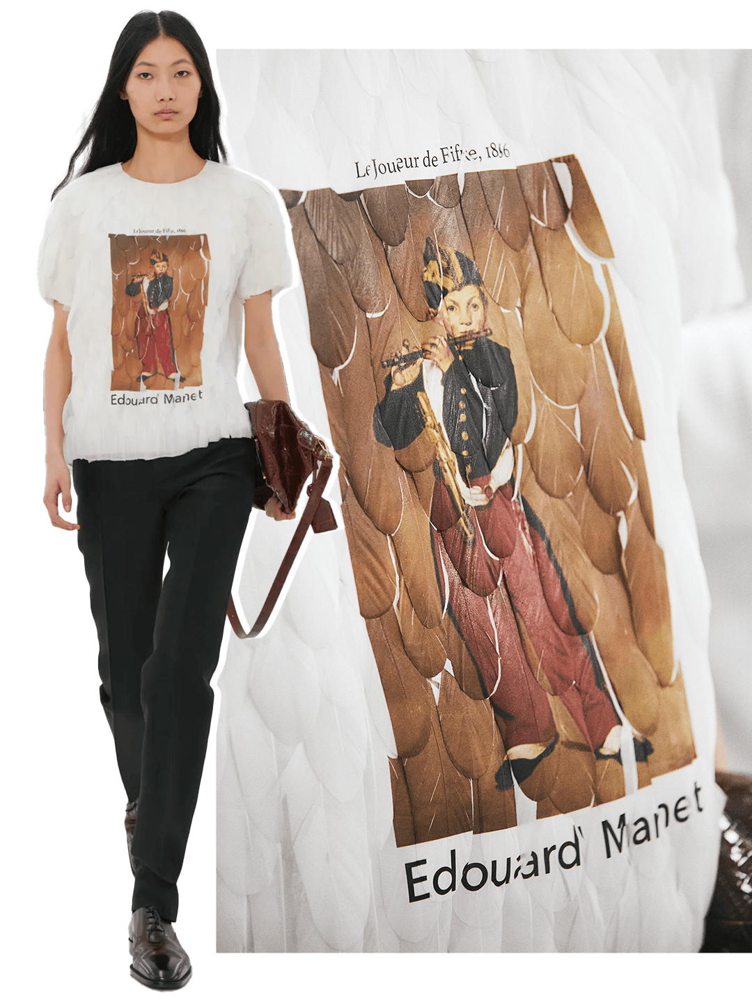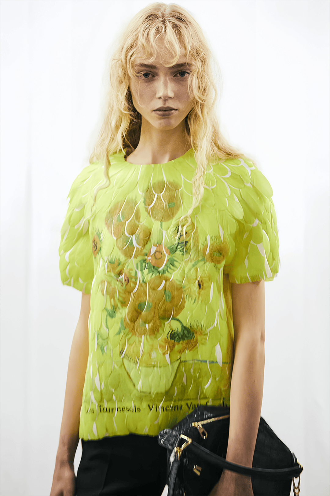 以及世界名画:来自梵高的《向日葵》和爱德华-马奈的《吹短笛的男孩》。近距离欣赏“羽毛印花”尤其惊艳。▼