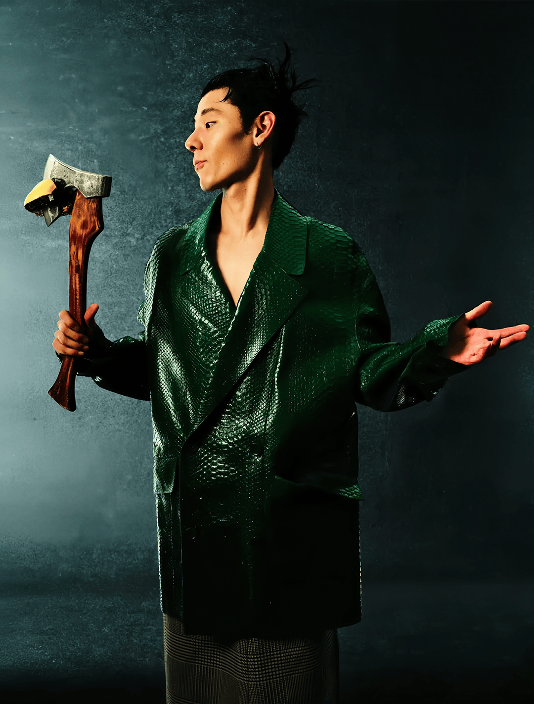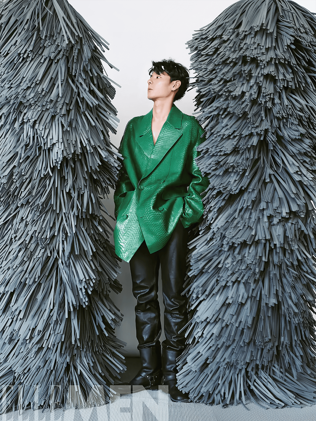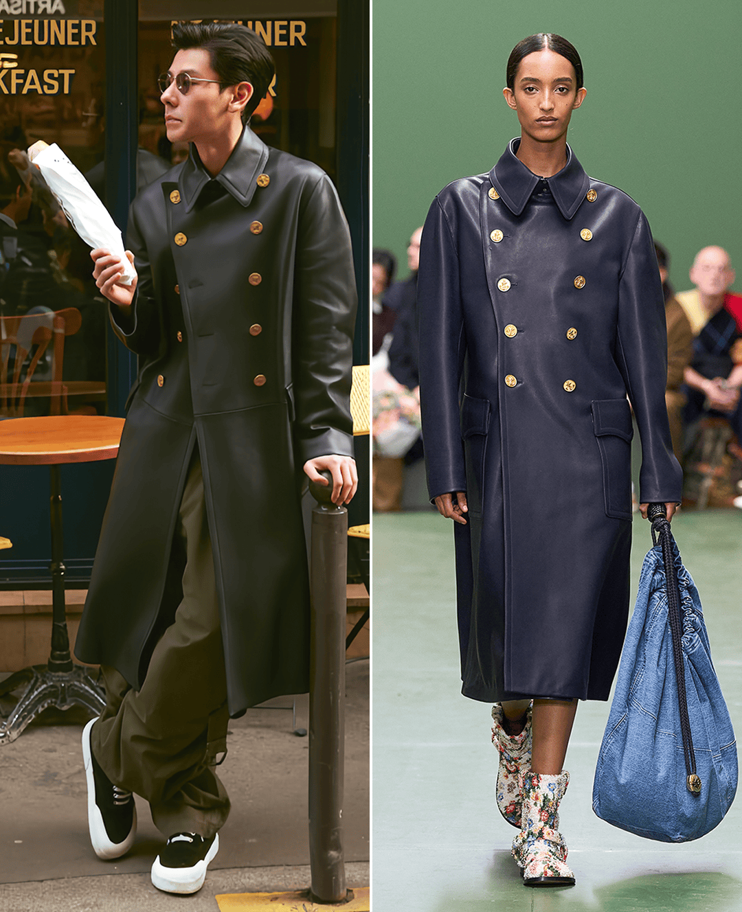 国内受邀看秀的男明星,还有因为《边水往事》火到不行的“王安全”蒋奇明,他之前在《Numéro》秋季刊和《ELLE MEN》十月刊大片中,演绎过同一款 LOEWE 2024 秋冬男装绿色皮衣,同一件上装,穿出截然不同的气质,可见其时尚表现力与可塑性有多强。▼