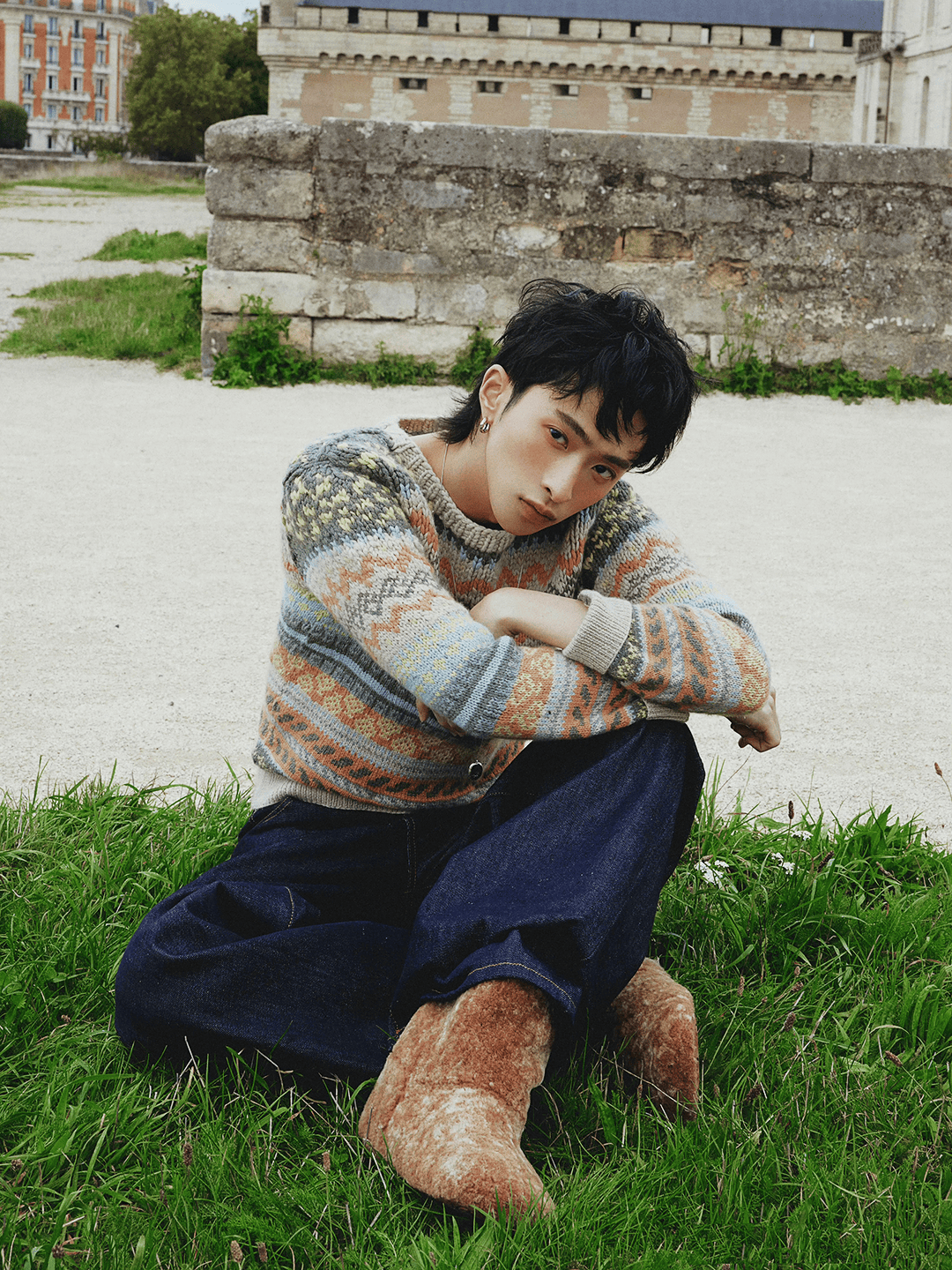 他当天身穿 LOEWE 2024 秋冬系列提花毛衣,搭配毛毛靴,温柔又时髦。聊到当天的看秀造型,恩利还表示,他的妆面和脚上的毛毛鞋是有概念呼应的,灵感来源是“冻伤的雪人”。▼