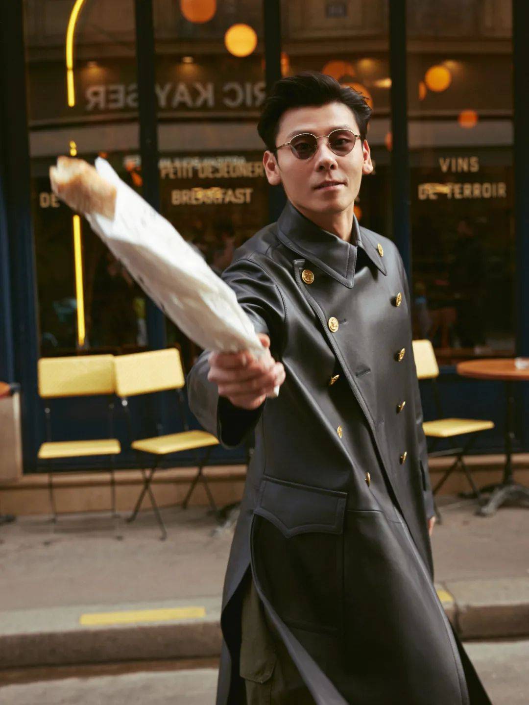 看秀时,蒋奇明身着 LOEWE 2024 女装成衣系列的双排扣皮革大衣,搭配宽松休闲裤、圆形墨镜,痞帅痞帅的。(老师!这里有人手持法棍“行凶”!)▼