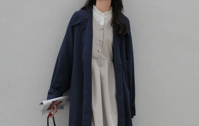 秋天肯定不能少了风衣,这一套的风衣不是所谓的风衣经典色,而是高级感满满的宝蓝色,显得更加休闲减龄,随意搭配一款基础款的连衣裙,就很好看。